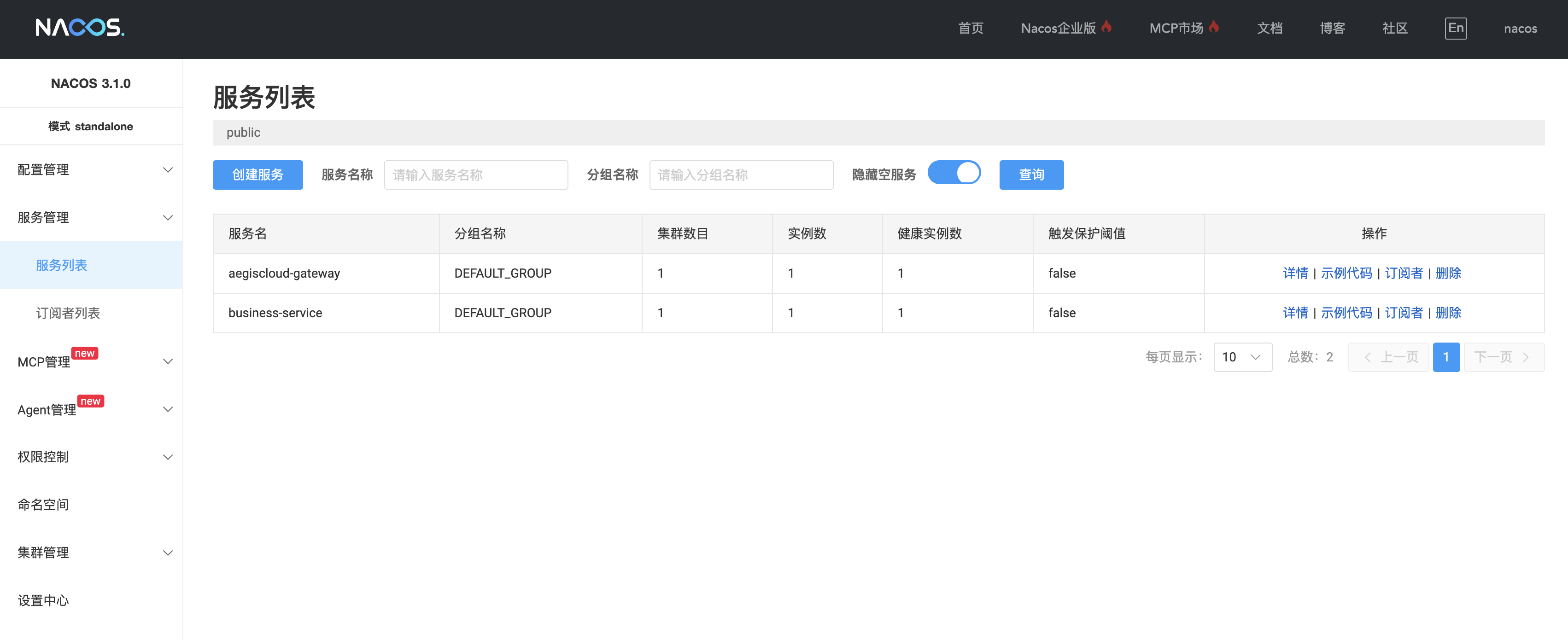 aegis-service-business) - 打开 Nacos 控制台(默认