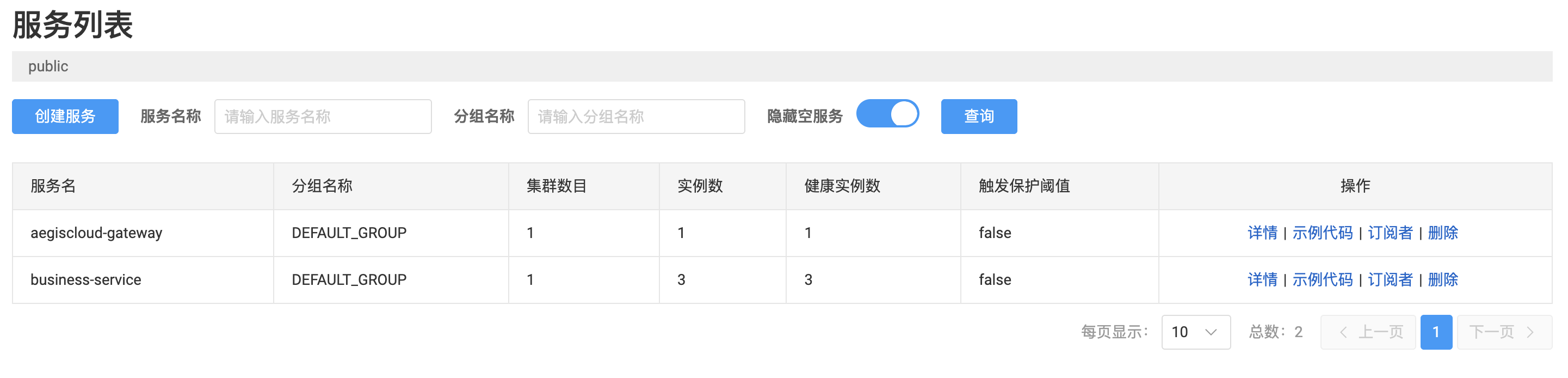 当 aegis-service-business 启动多个实例后,Nacos 中维护的状态大致是这样的: